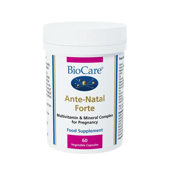Ante-Natal Forte by Biocare is designed as a nutritional support during pregnancy and breast feeding when you need extra folic acid, vitamins B6, D and E, iron, zinc and calcium, together with antioxidant support from bilberries.